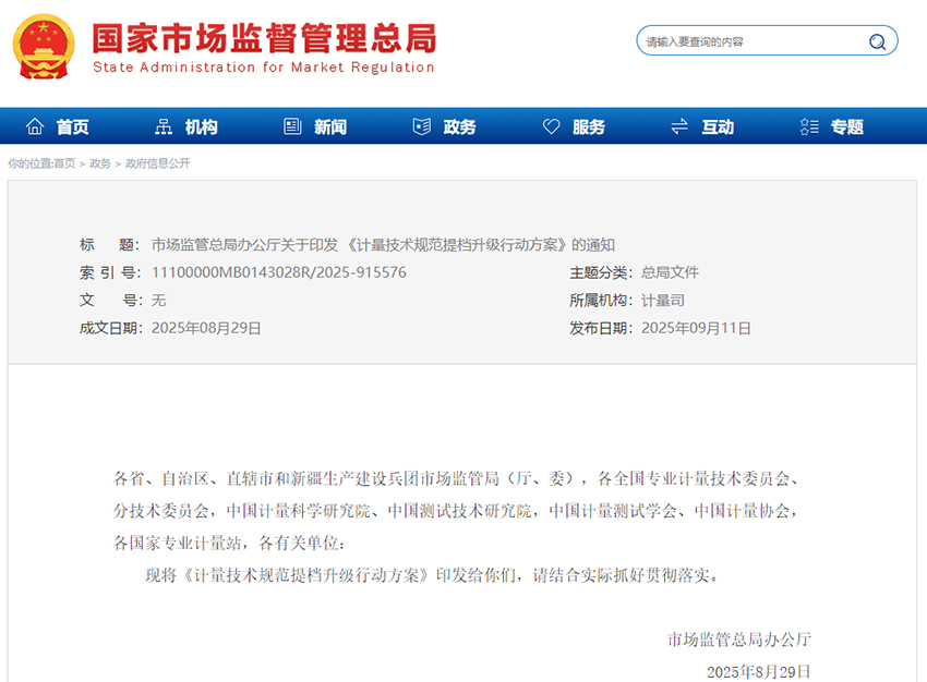 市场监管总局办公厅关于印发《计量技术规范提档升级行动方案》的通知