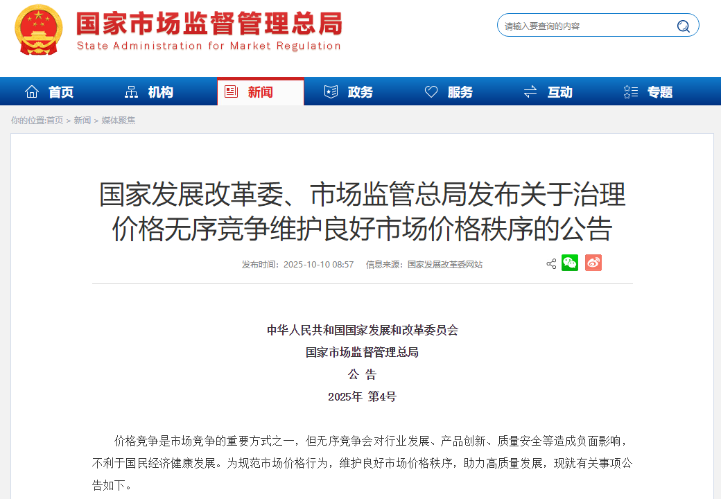 中华人民共和国国家发展和改革委员会国家市场监督管理总局公 告2025年 第4号价格竞争是市场竞争的重要方式之一,但无序竞争会对行业发展、产品创新、质量安全等造成负面影响,不利于国民经济健康发展。为规范市场价格行为,维护良好市场价格秩序,助力···